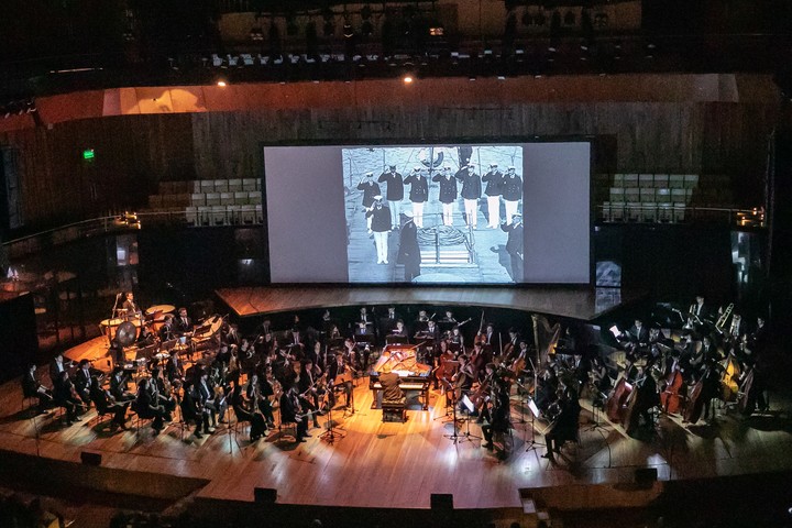 Organizado por la Fundación Cinemateca Argentina en colaboración con los Estudios Mosfilm y Dialog Consulting Group, esta función contará con un collage sinfónico y pianístico compuesto por obras de los grandes autores rusos del Grupo de los Cinco (Rimsky-Korsakov, Mussorgsky y Borodin), junto a momentos improvisados y no se incluirá la partitura que el austríaco Edmund Meisel compuso en su tiempo. Pero sí estará la copia restaurada que permitirá reencontrar la fotografía de la magistral mano derecha de Eisenstein, el director de fotografía Eduard Tisse, participe fundamental de que El acorazado Potemkin imponga su monumentalidad artística por sobre su vertiente ideológica.